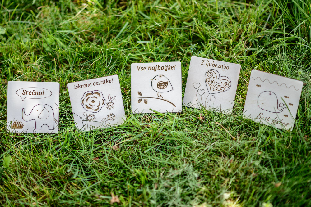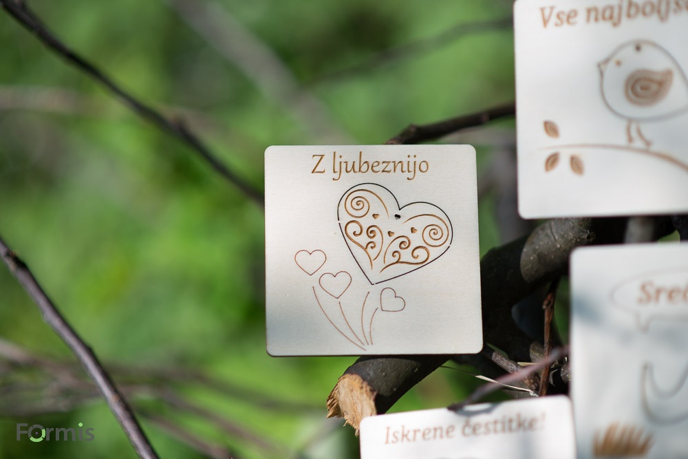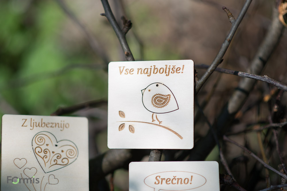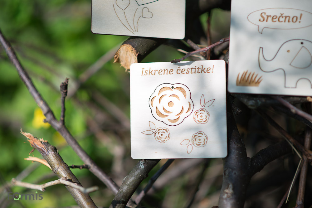 Lesena voščilnica, ki je hkrati lahko tudi dekorativna tablica ali podstavek.